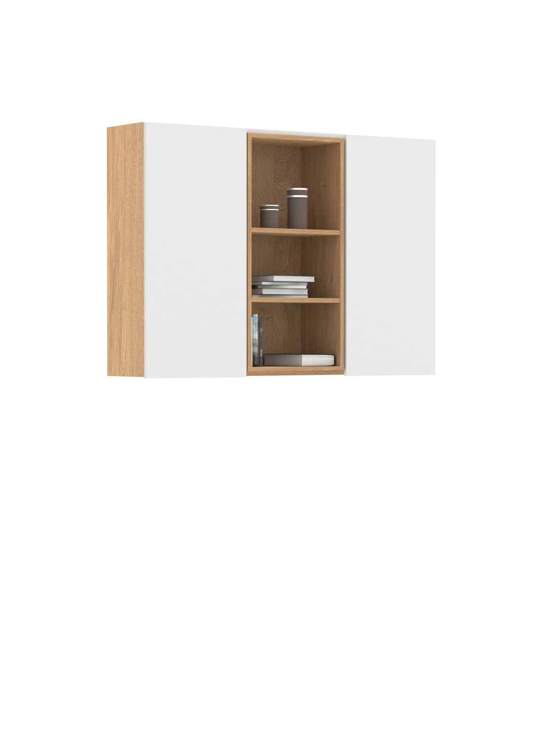 Фронтове и корпус от бяла ламинирана плоскост. 3 рафта в нишата. Ниша в цвят дъб.
